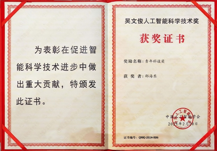 机械学院邵海东副教授获2024年度吴文俊人工智能青年科...