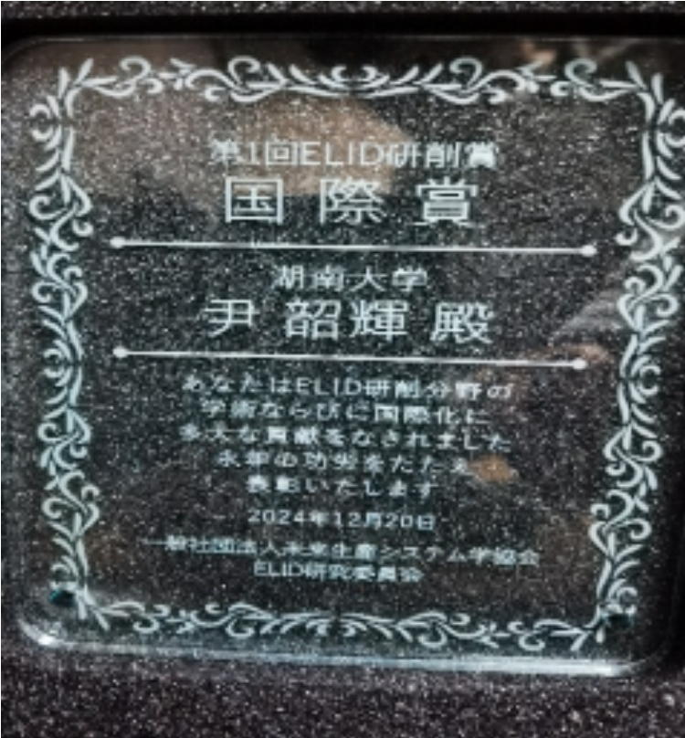 尹韶辉教授荣获第一届ELID磨削奖国际奖