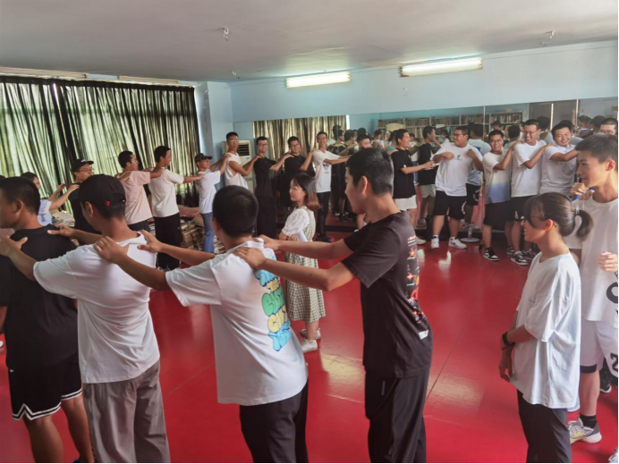 首个小活动为”相识接龙“,由王玉迪老师组织开展。活动结束,同学们顺利由分散的个体合成一个完整的圆。一番游戏下来,原本初见的陌生人已经成了可以一起欢笑的朋友。