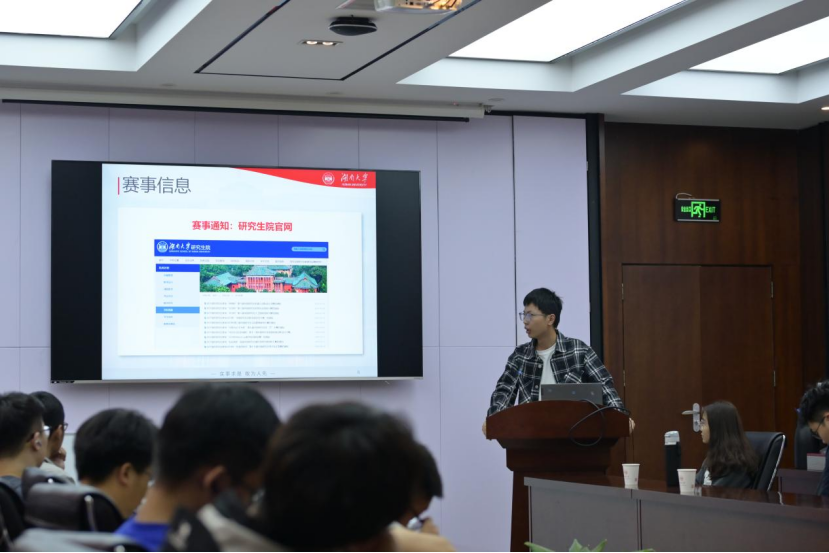 谢伟介绍了创新创业三大赛事:“大挑”、“小挑”以及“互联网+”比赛,关于赛事通知的获取渠道,包括:研究生院官网、年级QQ群,提醒同学们及时关注赛事信息。