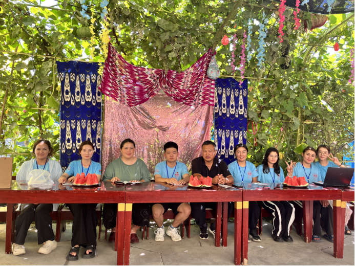 2024年7月23日,“石榴仔”筑梦队开始了第三天的实践之旅。团队一行人来到风景如画的伊宁县巴热提买里村。