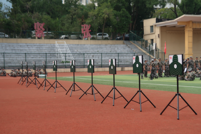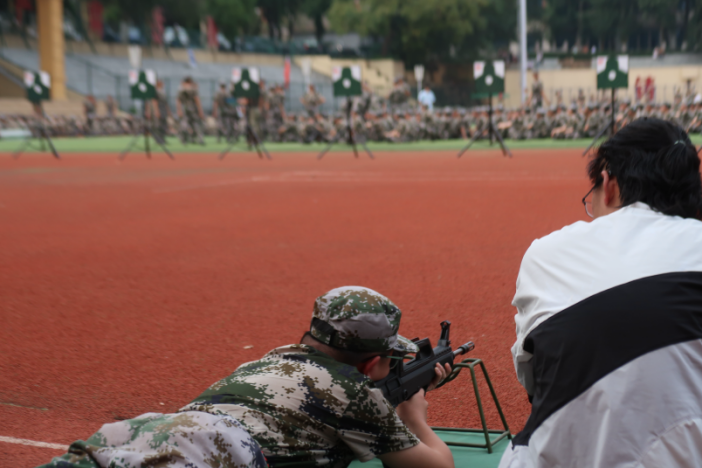 下午的射击训练则将军训的挑战带到了另一个层面。射击是一项既考验身体素质,也考验心理素质的竞技运动。同学们在比赛前接受了教官的指导,认真学习了射击技巧及安全规范。打靶过程中,有的选手在初期略显紧张,但随着活动的进行逐渐找回了节奏,射击动作也变得愈发精准和流畅。他们沉着冷静,聚精会神,力求每一发子弹都能精确命中靶心。