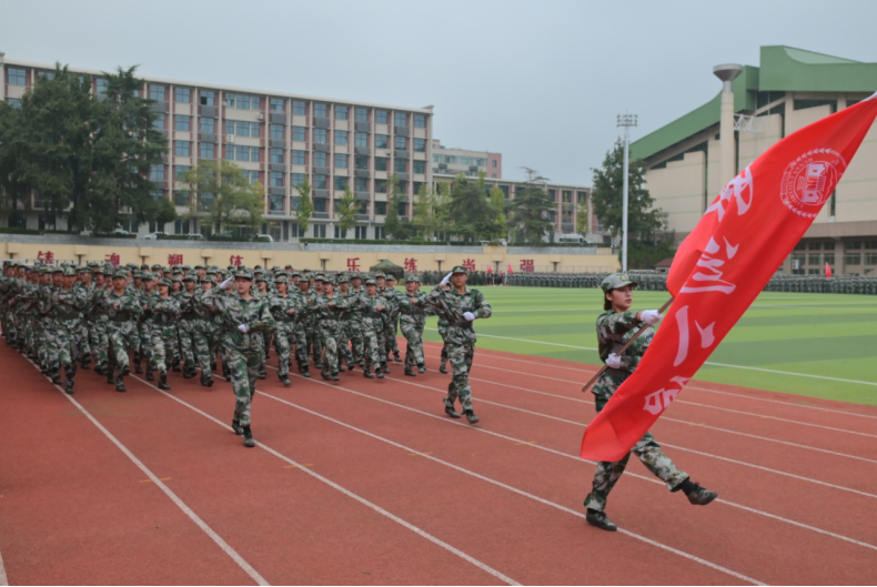 十月,秋高气爽,凉风习习,经过两周铁一般历练,新生昂首前进,迈入了军训场地。
