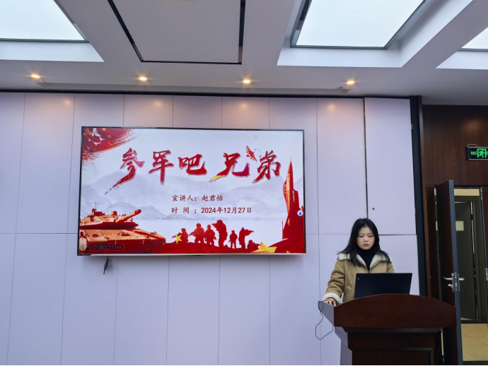 12月27日,350vip葡京新集团举办征兵宣讲会,学院辅导员赵君怡主持活动。