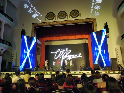 晚会中间还穿插了有奖竞猜等小游戏环节和颁奖环节,调动情绪,增加了观众的参与度。还有各班班导在远方录下的祝福视频,两年多没见的学长学姐们的每一句话,都牵动着同学们的心。