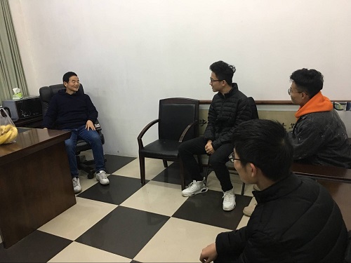 2018年12月11日下午5时,在我校国家汽车重点实验室322室,赵宇鹏、吕凌泰、刘玉琢、孙玉四位预备党员前去拜访老党员刘子健同志。在改革开放40周年之际,四位同学围绕改革开放的主题与老党员进行了放松而又密切的交流。