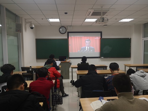 3月5日上午9时,十三届全国人民代表大会第二次会议在北京人民大会堂召开,当天,葡京新官网2017级本科生支部组织全体党员、预备党员收看开幕式,认真学习李克强总理的政府工作报告,并展开专题讨论。党支部书记、辅导员郑朝阳同志参会并主持。
