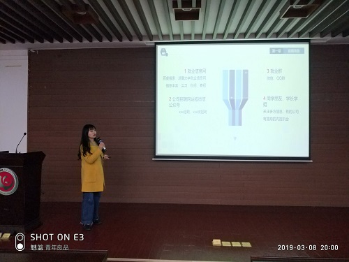 伴随新学期的到来,春招的步伐紧跟其后。为了帮助还没有找到满意工作的15级毕业生能在接下来的面试中出色表现,15级副团总支郝琦同学为大家分享了自己经历的诸多面试中累积到的经验。随后15级年级会三位成员:汪育荣、冯凡婷、舒泽孟,从自身经验出发,针对求职面试技巧为大家出谋划策。在这过程中,台下的同学们纷纷拍照,记录下了对自己有帮助的信息。