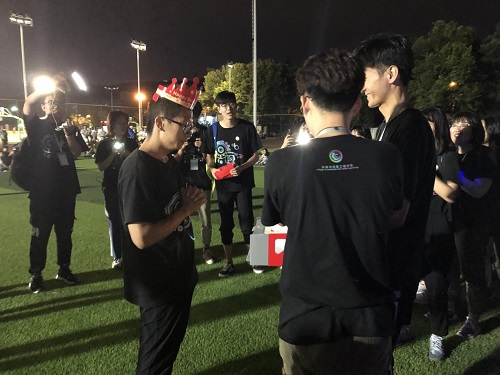 2019年8月31日,350vip葡京新集团2019级新生班助们在体育馆足球场上为班级助理孙鹤轩同学庆生。