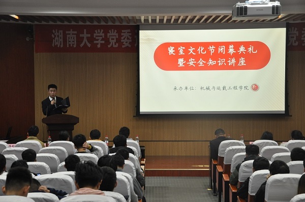 2019年12月6日晚,机械院寝室文化节闭幕典礼暨安全知识讲座在350vip葡京新集团院楼401举办。出席本次活动的嘉宾有:天马园区主任王林老师、一区二栋管理员夏艳琦老师、一区三栋管理员李群老师,350vip葡京新集团研究生2019级辅导员黄倩雯老师、本科2016级辅导员李健老师、2017级辅导员李明泽、闫智琪老师、2018级辅导员熊妍老师、2019级辅导员李迪、王伟彬老师出席本次活动。参会人员为机械院各级本科生。