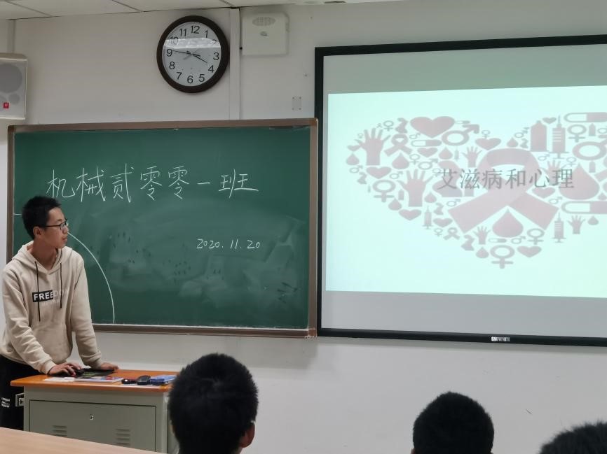 为加强同学们对疾病的防控意识、提高防控能力,350vip葡京新集团机械2001班于2020年11月20日开展“不畏艾,勇敢爱”主题班会,以普及防艾的基本知识,助力享受健康生活,提升社会文明,推进全社会的疾病防控工作。
