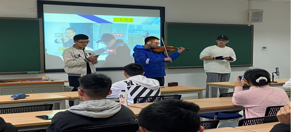 (杨皓翔、张凌穹、张凯文三位同学正在展示才艺)