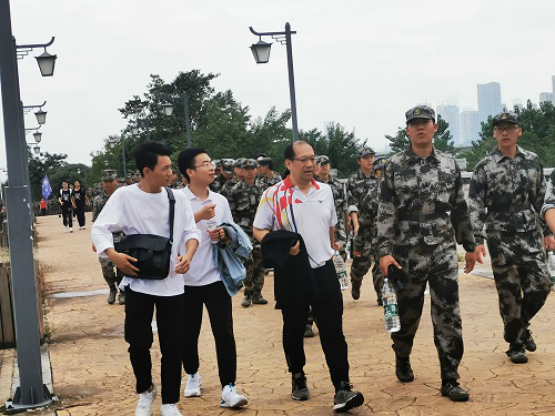 顷刻,烈阳高升,迷雾退散,行军也变得越发艰苦。在体力消耗与日光照射的双重考验下,我们机械院的学子们无人退缩,越战越勇,在磨练意志的道路上一往无前,发扬着机械院“推倒一切”的传统精神。途中,同学们还经过了伟大领袖毛主席曾踌躇满志之地——橘子洲,江心岛的修长壮阔与湘江的波涛汹涌相映成趣,令同学们感慨万分。江之美景,人之苦旅,苦乐参半,令这场拉练不再是单纯的强身健体,而更像是一次修行。