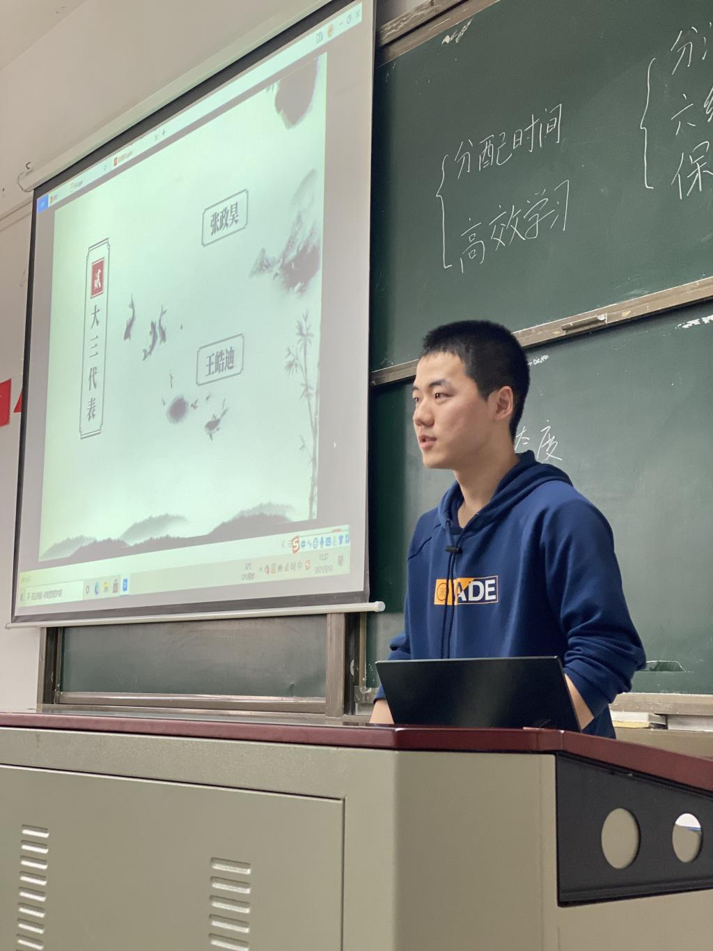 1. 首先是由机械2013班的陈冠宇和张珏晗同学来进行分享。从新生的角度出发,他们都觉得在目前阶段提高学习成绩是很重要的一环。张珏晗强调了学习态度对学习效果和成绩的决定性影响,介绍端正学习态度的方法,提出如何培养学习兴趣的困惑。陈冠宇则发表对学习成绩之外的综合能力的看法,提出了关于构建学习体系和养成高效学习习惯的疑问。