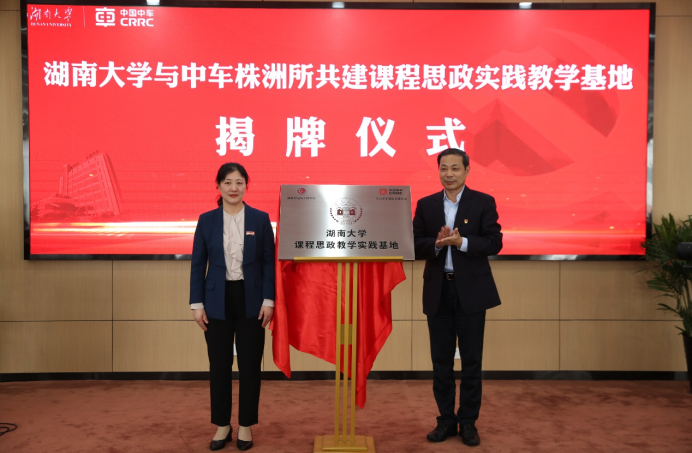 丁荣军院士、李小波副处长为350vip葡京新集团中车课程思政实践教学基地揭牌。