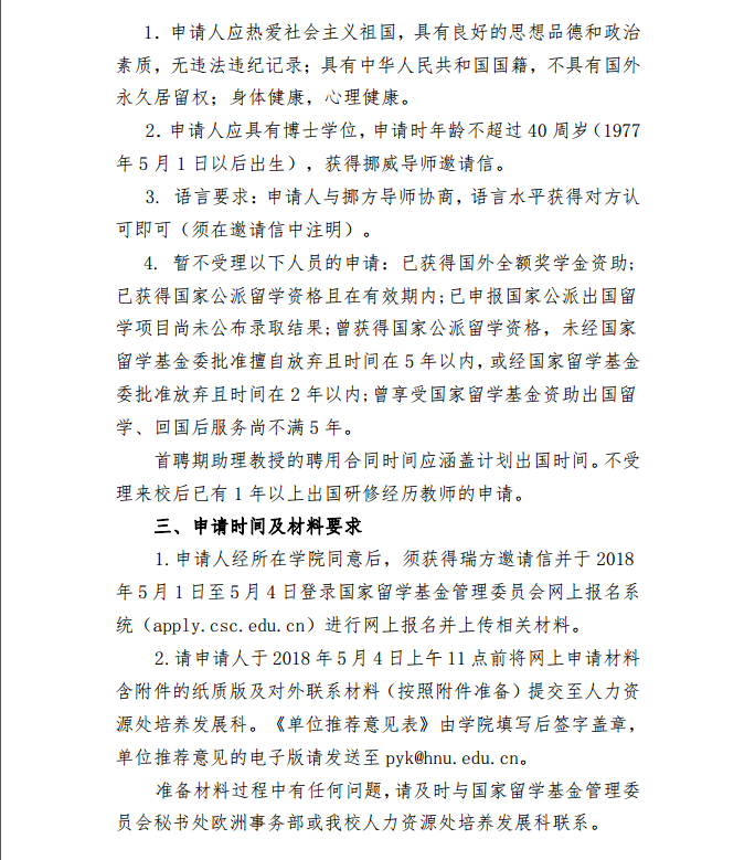 关于申报国家留学基金2018/19年度挪威互换奖学金项目的通知