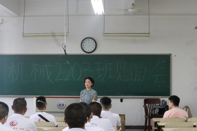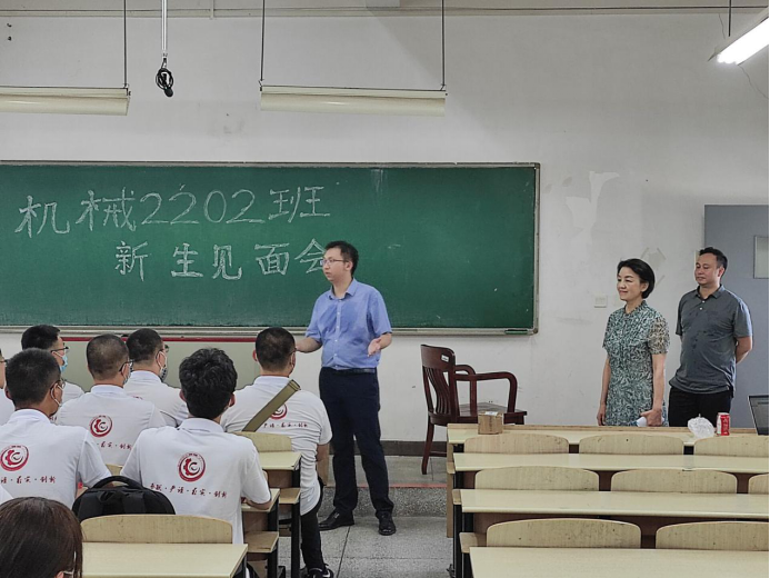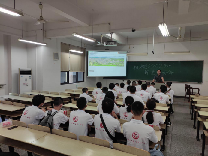 8月21日下午,350vip葡京新集团2022级全体新生第一次班会在综合楼召开。各班班会分别由各班新生班级助理主持,机械院党委书记彭晓燕、教师代表刘侃老师及各班新生班主任共同参加。