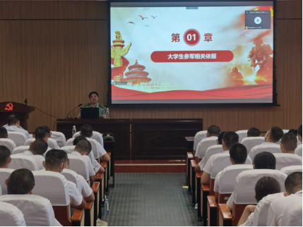 8月22日上午,机械院面对2022级本科新生开展了军训动员大会,本次大会以院楼401为主会场,另设三个分会场进行线上转播。此次军训动员大会特邀请了武装部副部长戴谋元老师为新生开展军训动员与国防教育。