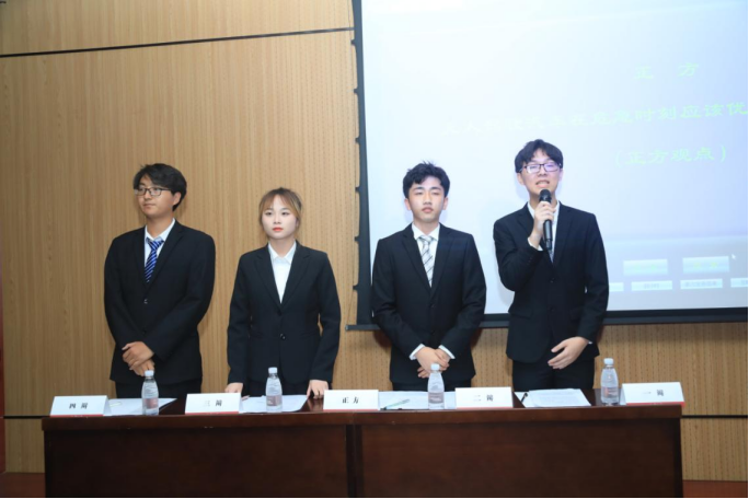 在随后的揭幕战中,辩题围绕“无人驾驶汽车在危急时刻应该优先保护车内人员/车外人员”展开,双方辩手妙语连珠各抒己见,引得阵阵喝彩,为众多观众献上了一场精彩的思辨盛宴。最终,正方机械院本科二队凭借更缜密的逻辑和出彩表现赢得揭幕战胜利,反方三辩李俊哲荣获本场比赛最佳辩手称号。