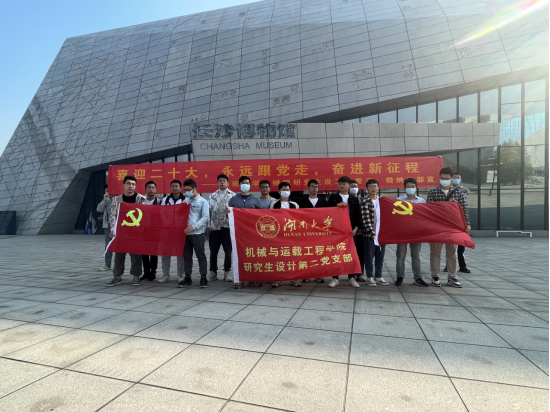 2022年11月5日,机械院研究生微纳党支部、重三党支部、设计第二党支部共同开展党日活动,前往长沙市博物馆,开展以”追寻湖湘历史,传承奋斗精神“为主题的党日活动。历史,是一种连续文明的纽带,而馆藏之物,正是历史最好的讲述者。尽管纸绢丝帛早已蒙尘,玉石瓷漆早已皲裂,青铜黑铁早已锈蚀,但他们依旧蹲据在这小小的玻璃展台内,默默注视着每一位走进的游人,向他们叙述着湖湘文化千年以来的风云变迁。如今的人们,依旧可以清晰地看到:贯穿在湖南人血肉里的,仍然是那徜徉千年的湘楚文化。支部成员通过学习湖湘历史,感受到了中华民族自强不息的精神力量。