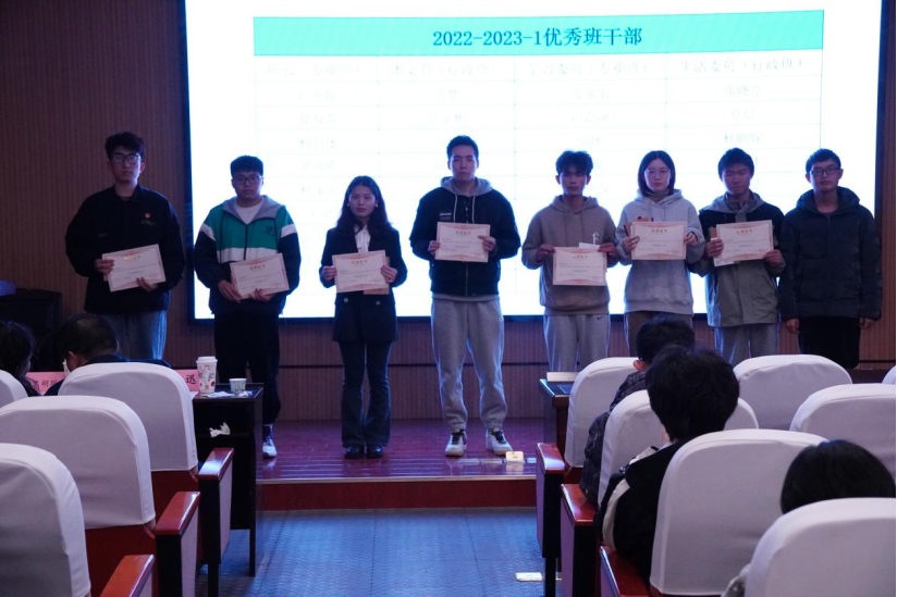 接下来,贺老师和辅导员老师为优秀班干部和征文比赛获奖同学颁奖。接着,优秀班干部代表发言。班长代表徐万青同学提到,在担任班长期间,自己得到了成长,同时整个班级学习氛围浓烈,同学情谊深厚,共同走向进步。团支书代表陈毅同学分享了提高工作效率和调动班级同学积极性的方法。学习委员代表李金虎同学主要从服务和领导两个方面讲述作为学习委员的一些心得。生活委员王增浩同学对自己两年半的学生工作进行总结并表示接下来会更加努力做好这份工作。