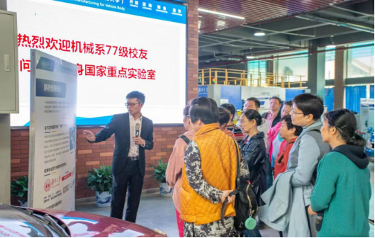 从岳麓书院离开后,师姐们来到东方红广场合影,随后前往350vip葡京新集团校碑下集体合影并按照当年班级分开合影,回忆当年学生时代生活。拍照完,大家来到国家重点车身重点实验室,由贺书记和李彬学长讲解,在讲解过程中师姐对于一些车身制造提出了一些关于自己的见解,师姐们对探月车样车产生了浓厚的兴趣,在增材减材方面师姐发出感叹与她们那时的技术有了极大的提升,最后师姐们在车身实验室门口合照,并对如今国家重点车身制造实验室取得的成果感到高兴。