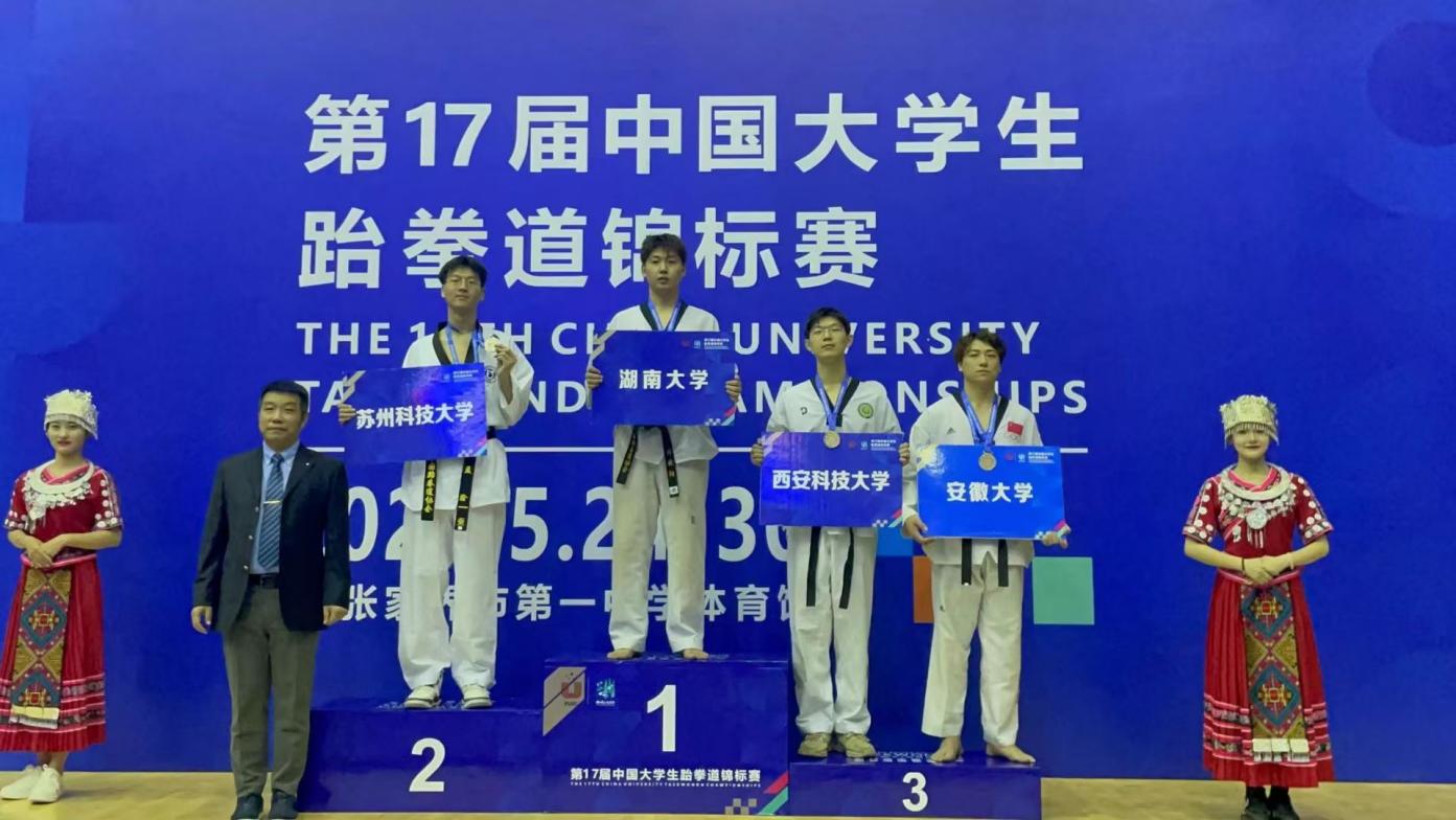 5月26日,第十七届全国大学生跆拳道锦标赛在张家界市第一中学体育馆开赛。于5月29日完赛,葡京新官网参赛选手发挥出色,脱颖而出。刘晓阳荣获男子甲组87kg第一名、冯刚荣获男子甲组58kg第三名、李贤明荣获男子甲组54kg第五名、徐睿荣获男子甲组87kg第五名。在团体赛中荣获男子甲组第一名。