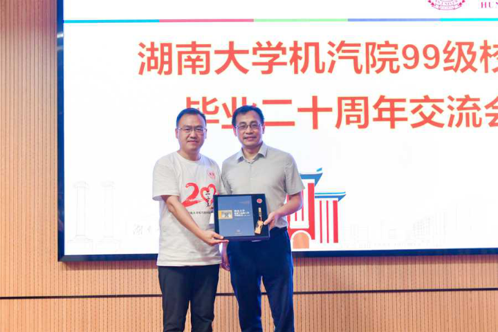 随后,在各位老师们倾情发言之后,同学们集体向与会老师们献上鲜花、祝福与感谢。姜院长向校友赠送学院院史书籍做留念。同时,校友们也表示希望用行动支持母校,倡议以机汽院99级全体校友名义成立奖助学金。他们表示,这不仅仅是作为湖大学子的情怀,也是为国家为社会发展的一种责任的承担,不限金额,完全自愿。这一举动真实展现了我们湖大学子的气魄,心系母校、胸怀社会。