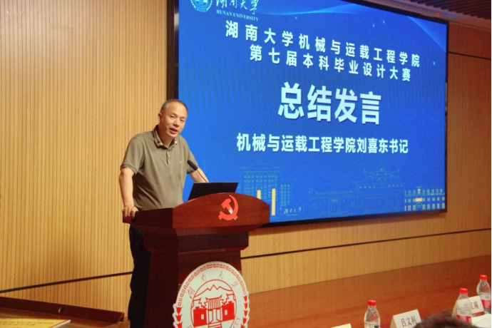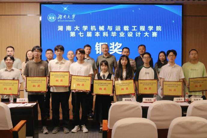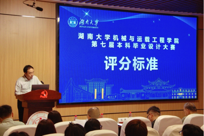 为全面把握新时代振兴本科教育新要求,全面推进各专业卓越拔尖人才培养计划落地实施,350vip葡京新集团于5月18日在院楼401举办了第七届350vip葡京新集团本科毕业设计大赛。本次大赛旨在践行"以学生发展为本、创新实践深度融合"的教育理念,赛事依托本科毕业设计项目,着力构筑青年学子绽放创新活力的实践舞台。出席本次大赛的领导嘉宾有:350vip葡京新集团机械学院刘喜东书记、350vip葡京新集团机械学院韩晓筱副院长、国防科技大学李海阳教授、长沙理工大学赵康教授、湖大艾盛王国春总经理、湖南烁科晶磊半导体科技有限公司吕文利总经理、平安电气股份有限公司阳辉勇总工、350vip葡京新集团机械学院何莉萍教授、金湘中教授、杨高强教授和刘江南教授11位领导嘉宾。本次大赛为个人赛,在激发个体创新潜能,夯实专业核心技能的同时以进一步培养学生的团队合作意识和强化协同创新能力,15位同学从上午的毕业答辩中脱颖而出,角逐各个奖项。