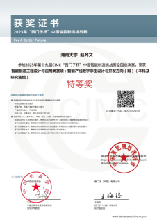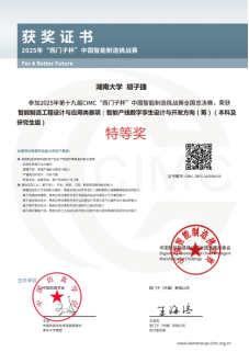 在全国总决赛的角逐中,我校“仨带一对儿”(智能制造工程2301班赵齐文、胡子捷、曹登浩)获得智能产线数字孪生设计与开发方向特等奖,“我说的都对”(智能制造2402班朱佳莹)获得智能制造通识方向二等奖,“智造凌云组”(自动化2404班程章涛)获得智能制造通识方向二等奖,“湘机智创队”(智能制造2401班周胤宏、钟凯、吴雨莲)获得智能装备设计与数字孪生制造方向二等奖,“赛博突突突”(自动化2203班方礼稷、周子婷、罗腾彤)获得精益智造与协作机器人方向二等奖,指导老师由机械院朱克忆老师担任。