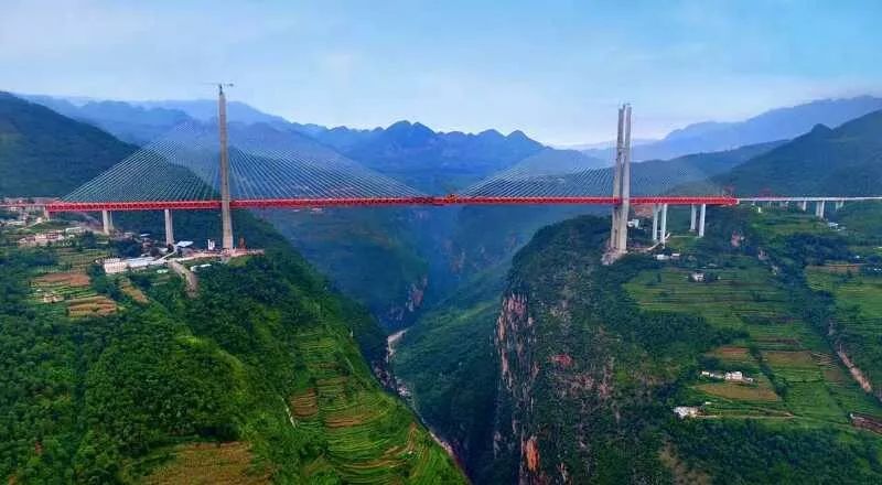 2013年开工,2016年9月10日合龙,2016年12月29日正式建成通车。北盘江大桥位于云南省宣威市普立乡腊龙村与贵州省六盘水市水城县都格乡交界处,横跨北盘江大峡谷,是杭瑞高速公路控制性桥梁工程。大桥通车后,云南宣威城区至贵州六盘水的车程将从此前的5小时左右缩短为1个多小时。