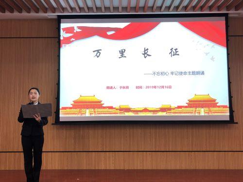 在“不忘初心、牢记使命”主题教育活动开展之际,为掀起全院青年学生学习十九届四中全会精神热潮,引导青年争做符合时代先锋的新青年,展现葡京新官网学子的青春风采,12月16日,350vip葡京新集团“不忘初心,牢记使命”主题演讲、经典诵读比赛在学院401报告厅举行,来自全院本科和研究生各年级以及党支部推选出来的选手参加了此次比赛。