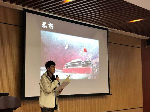 同学们慷慨激昂宣理论、诵经典,在诗文话语中感受到新中国成立70周年取得的伟大新成就,表达出始终跟党走的坚定信念,相信机械学子能在今后的学习生活中对标对表找差距、牢记初心担使命,为学校和学院和双一流建设、为实现中华民族的伟大复兴贡献智慧,力争做新时代的“四有”好青年。