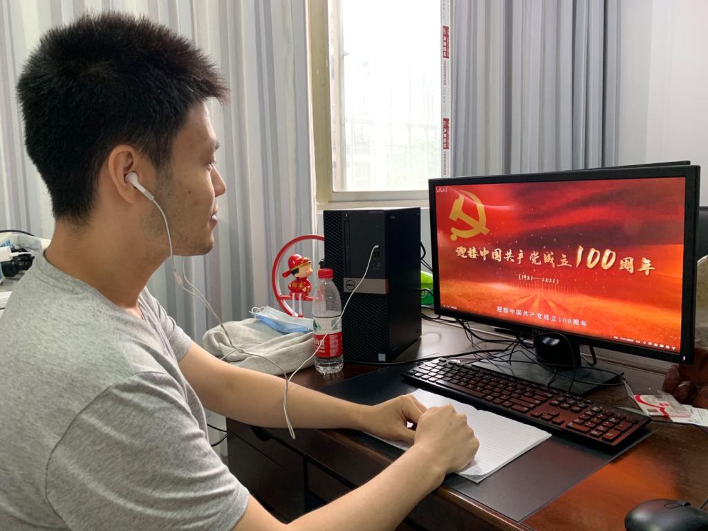 7月1日上午,为庆祝建党99周年,机械院师生党员结合学习工作实际,采取集体观看与个人自看相结合方式,通过电脑端、手机端等网络途径现场观看“党旗飘扬•筑牢红色防火墙”高校党组织战“疫”示范微党课。