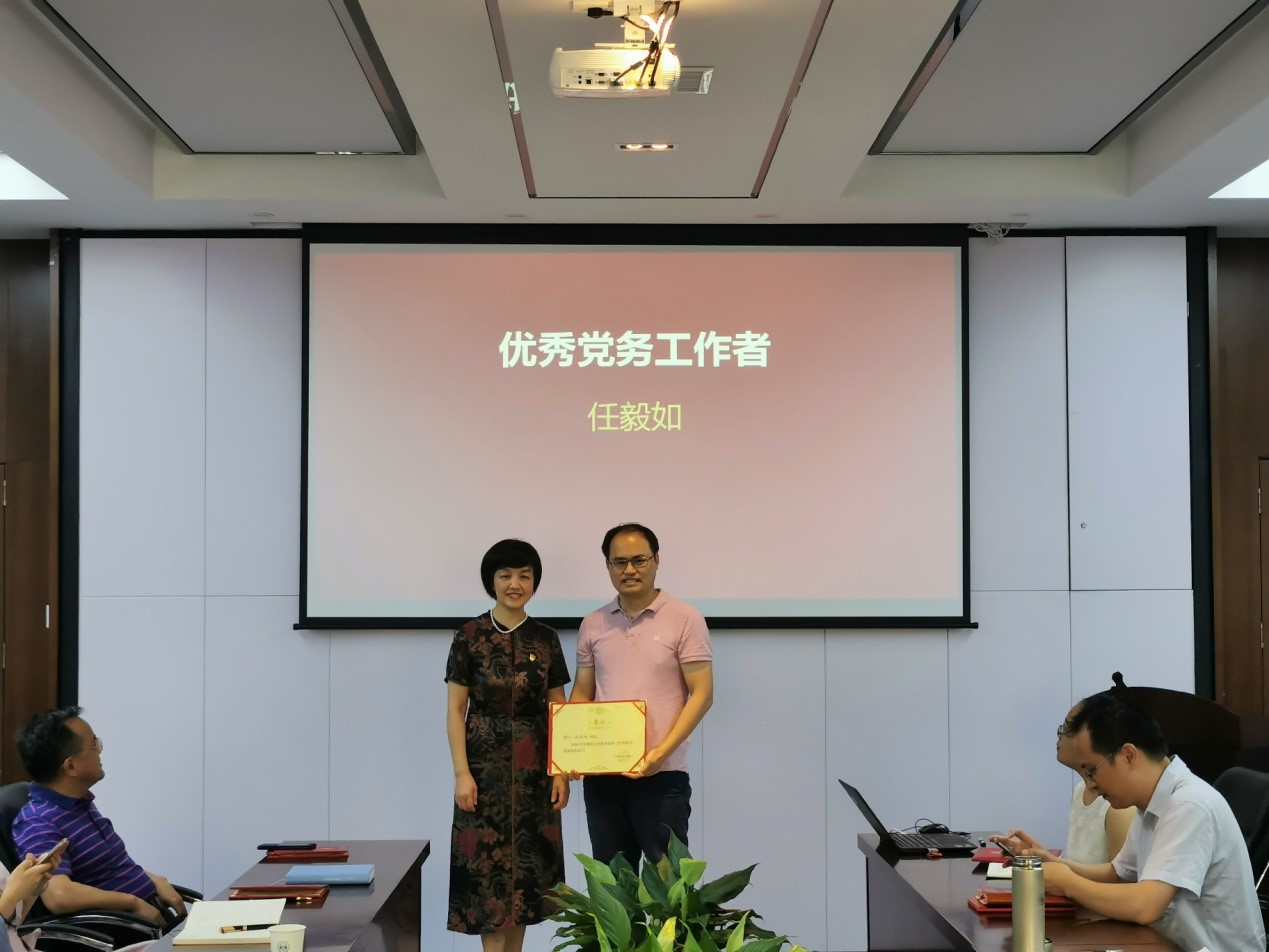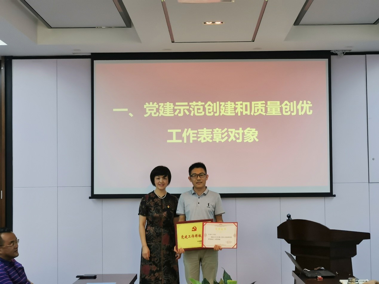 会上对一年来成绩突出的3个先进基层党支部、8名优秀教工党员、1名优秀党务工作者、1名青年教工党员示范岗进行了表彰并颁奖。优秀党务工作者任毅如同志从严以律己,树立党务工作者的形象,虚功实做,以务实之心做好党务工作,抓住灵魂,做好教工的教育引导工作三个方面分享了作为支部书记的体会。