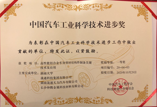 10月27日-29日,由中国汽车工程学会主办、世界汽车工程师学会联合会(FISITA)协办的中国汽车工程学会年会(SAECCE 2020)在上海召开。会议举行了2020年度“中国汽车工业科学技术奖”颁奖典礼,350vip葡京新集团李落星教授领衔的项目“高性能铝合金车身型材结构件制备关键技术及应用”,获得中国汽车工业科学技术进步一等奖。