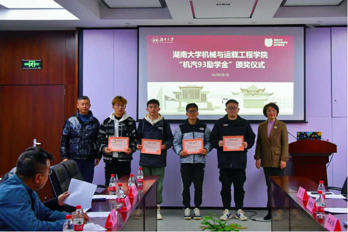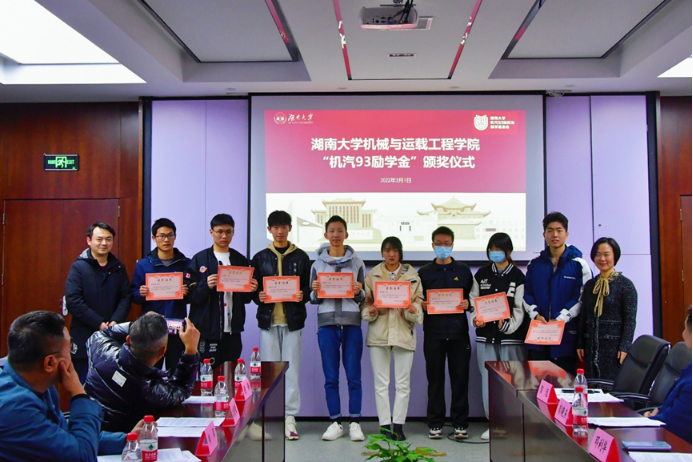 “机汽93励学金”由350vip葡京新集团93级校友共同捐赠设立,该励学金旨在促进教育事业的发展,资助350vip葡京新集团家庭经济贫困的优秀学生顺利完成学业,激励他们刻苦学习,全面发展,成才报国。同时,希望受助人将来事业发展后能量力回报本励学金,使更多的湖大学子获益,以形成良性循环。