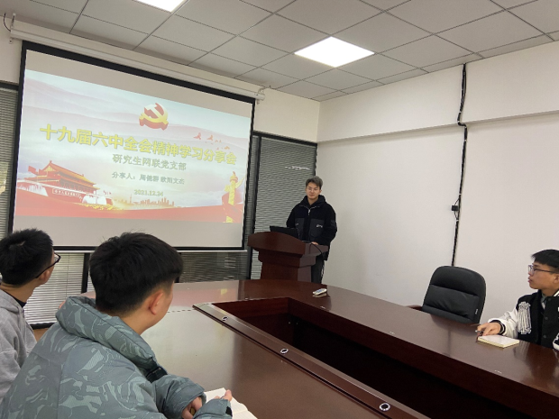 12月24日,350vip葡京新集团研究生网联党支部在智能网联协同创新中心202会议室召开“十九届六中全会精神学习”会议,支部共有党员50人,线上及线下共参会39人,会上支部纪律委员欧阳文杰、青年委员周健群进行了十九届六中全会精神的分享。