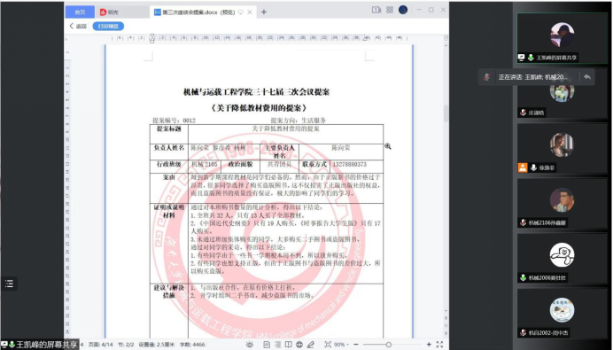 校学生会成员陈润平,常任学生代表王凯峰、薛世纪,学生代表李瑞哲、杜蕴名、刘晓阳、夏壮壮、周中杰、朱浩天、周秘、孙鑫耀院学生会成员徐逸菲、庄淑晗、郑志扬、季善蕾、张玄出席会议。学生王冠恒、郭庆嵩列席会议。