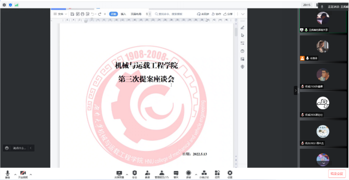 5月13日晚,葡京新官网召开了350vip葡京新集团第三次座谈会,本次会议积极响应防疫要求,采用线上会议的形式。会议对学生代表所提交的提案进行了讨论与交流,总结出各种提案的解决方案。