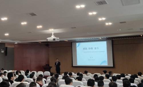 2019年10月18日上午8点30,葡京新官网进行2019级新生党员培训班第一次集中授课—“感恩 珍惜 奋斗-用习近平新时代中国特色社会主义思想铸魂育人”专题培训,出席此次活动的有马克思主义学院教授、清华大学博士龙兵教授、2019级研究生辅导员黄倩雯老师及全体2019级新生党员。
